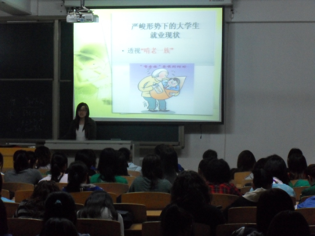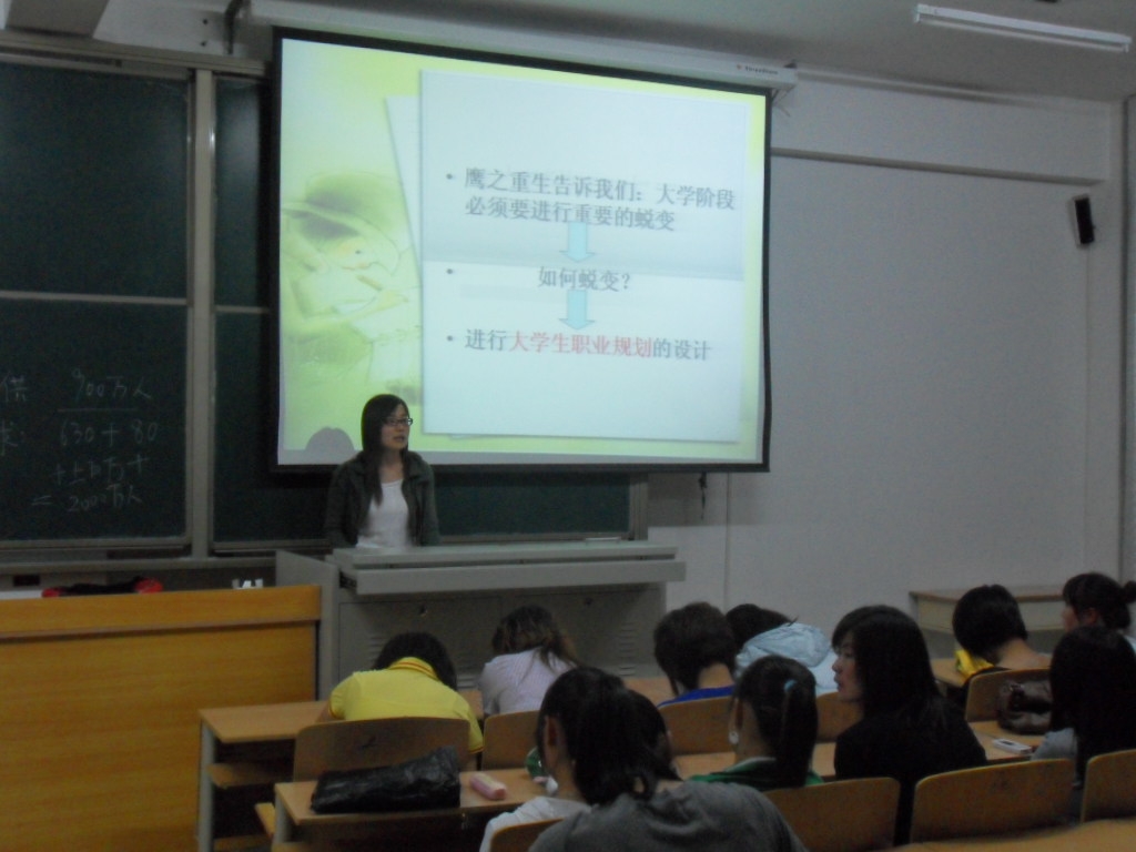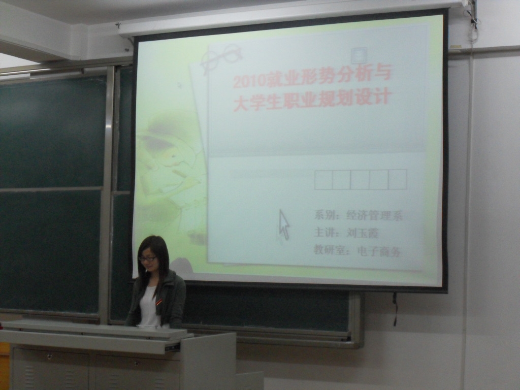 2010年5月13日晚上19点40分,电子商务教研室刘玉霞老师在10#302面向全系进行了题目为“2010就业形势分析与老员工职业规划设计”员工讲座。