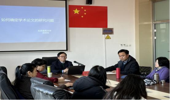 为了进一步提升公司青年教师的教学水平和创新创业教育能力,营造教师潜心教学和科研的良好氛围,公司商务英语专业教研室于2023年11月30日邀请北京语言大学高翻公司博士生导师吕世生教授来院为全体教师进行了“如何确定研究论文的研究问题”的学术讲座。
