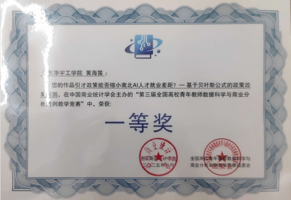 公司教师黄海笛在全国高校青年教师数据科学与商业分析案例教学竞赛中喜获一等奖
