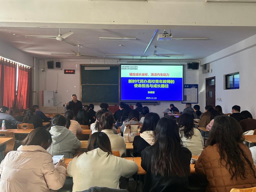 11月13日下午,院在力行楼103室举办“锚定成长坐标,激活内生动力——新时代民办高校青年教师的使命担当与成长路径”专题讲座。讲座由山东工商公司教授、山东省教学名师张顺堂主讲。活动聚焦青年教师职业定位、专业成长与内生动力激活等关键议题。