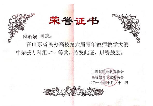 公司教师陈丽娴在2017年山东省民办高校第六届教师教学比赛中荣获二等奖