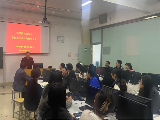 教师是立教之本,师德是兴教之魂。为进一步提升教研室全体教师师德素养,塑造良好师德形象,增强教师的荣誉感、责任感和使命感,根据《悟空体育2022-2023学年第一学期“师德师风建设月”活动方案》工作安排,10月13日下午,信息管理与信息系统教研室开展了“师德师风建设月”专题活动。