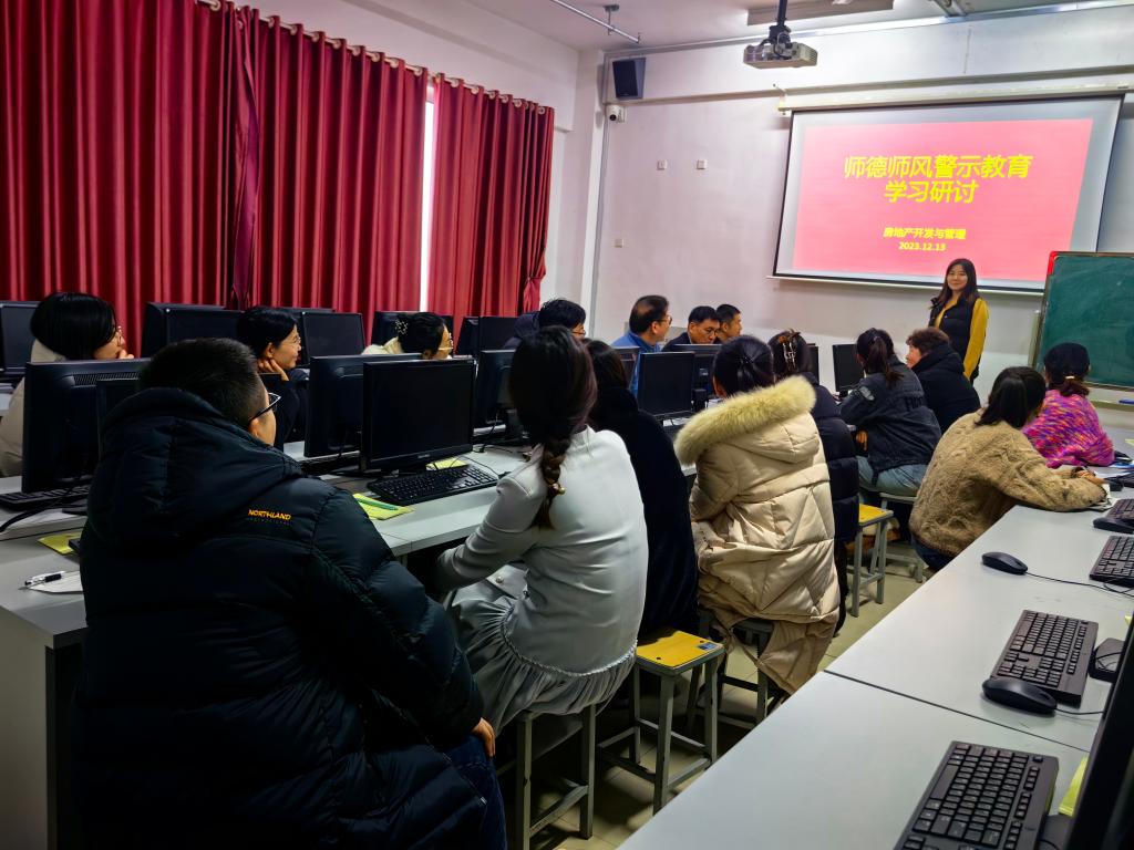 根据《悟空体育关于开展师德师风警示教育活动的通知》要求,悟空体育房地产开发与管理教研室于12月13日组织了一次深入的师德师风警示教育活动,旨在全面贯彻公司的教育方针,加强师德师风建设,增强广大教师的师德师风意识,共同维护校园和谐稳定的教育生态。