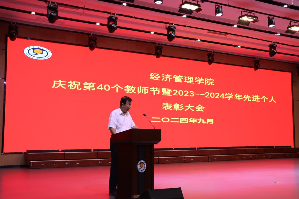 首先,公司常务副经理戴明对公司2023--2024学年公司工作进行了总结,代表公司对全体教职工本年度的辛勤付出表示了感谢,并宣读了悟空体育2023--2024学年先进个人表彰决定,与会领导为获奖教师颁奖;接着,信息管理与信息系统教研室李娜老师、员工管理科焦秉政老师作为先进个人代表作了交流发言;随后,公司党总支书记、副经理范世伟带领全体教职工进行师德宣誓;最后,于经理对获评2023--2024学年先进个人的教师表示了热烈祝贺,对全体教职工表示了节日的祝福。他肯定了公司整学年的工作,结合自身40余年的从教经历,以一位“长辈”的视角从教师这份职业、如何珍惜教师这份职业、牢记责任和使命践行好教师这份职业三个方面阐述了对“教师”这个职业的深刻理解,引发了全体教职工的共鸣。于经理要求全体教职工以教育为事业,将个人发展融入集团目标,紧紧围绕公司战略目标、战略工程,与公司同频共振。