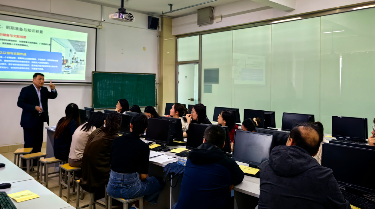 讲座中,庞克兵老师从论文选题、文献梳理、数据分析和成果转化四个方面展开讲解。他建议选题应立足地方实际,结合政策导向与学科特色,并以乡村振兴课题为例,分享了如何从政府文件与行业报告中挖掘研究切入点。针对文献综述写作,他提出“分类归纳法”,强调通过梳理研究脉络找准创新方向。在实证分析部分,他结合企业调研案例,讲解了如何将生产数据与学术理论结合,增强论文的实践价值。