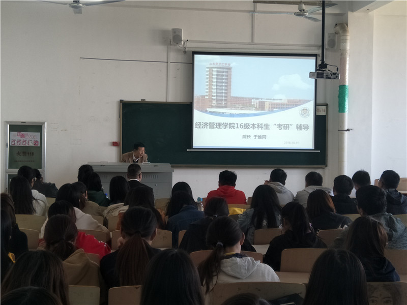 公司经理于维同教授担任此次考研辅导专题讲座的主讲人,于教授从为什么考研、大三后的抉择、如何进行报考与备考、如何处理学业与考研关系、怎样应对考研面试和调剂5个方面,针对考研中易出现的问题进行了总结归纳和讲解,提出了对大家的期许“认清情况不跟风;坚定信心不动摇;坚持努力不放弃”。