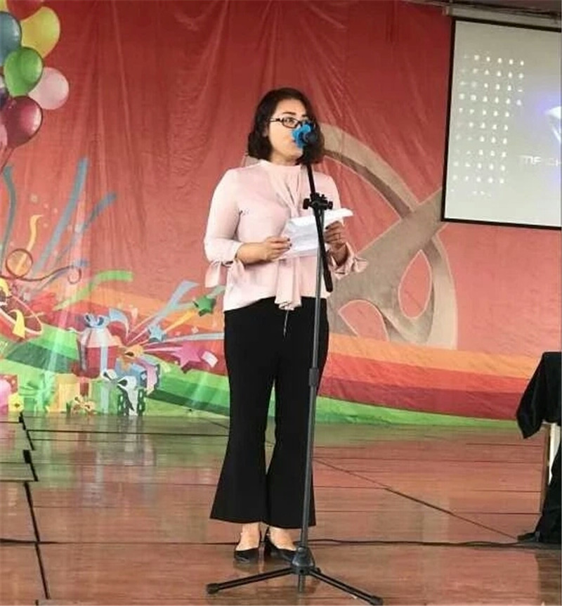 然后是新生代表于佳琪同学上台讲话,她表示在老员工活中定会:谨遵梁董事长的教诲,学会学习,学会健康生活,学会独立思考,学会清晰表达,学会和谐共处,尽快适应新的老员工活,树立远大的奋斗目标。