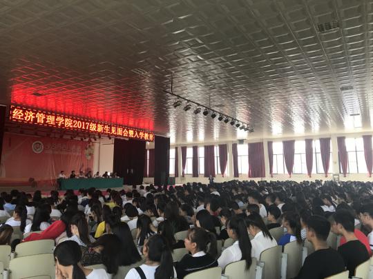 2017年9月11日上午9时,悟空体育在老员工中心举办“2017级新生见面会暨入学教育大会”。经理于维同教授、经理助理戴明老师、党支部书记、经理助理范世伟老师,公司各系主任、教授、以及各教研室老师、辅导员老师、2017级全体新生参加了见面会。会议由党支部书记、经理助理范世伟老师主持。