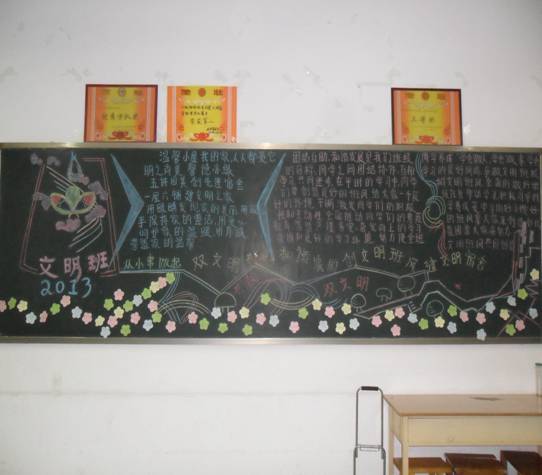 为了加强班级文明建设,创建文明校园,2013年11月12日我系开展了由系部团总支主办、宣传部承办的以“文明班级、文明宿舍”为主题的黑板报评选活动。