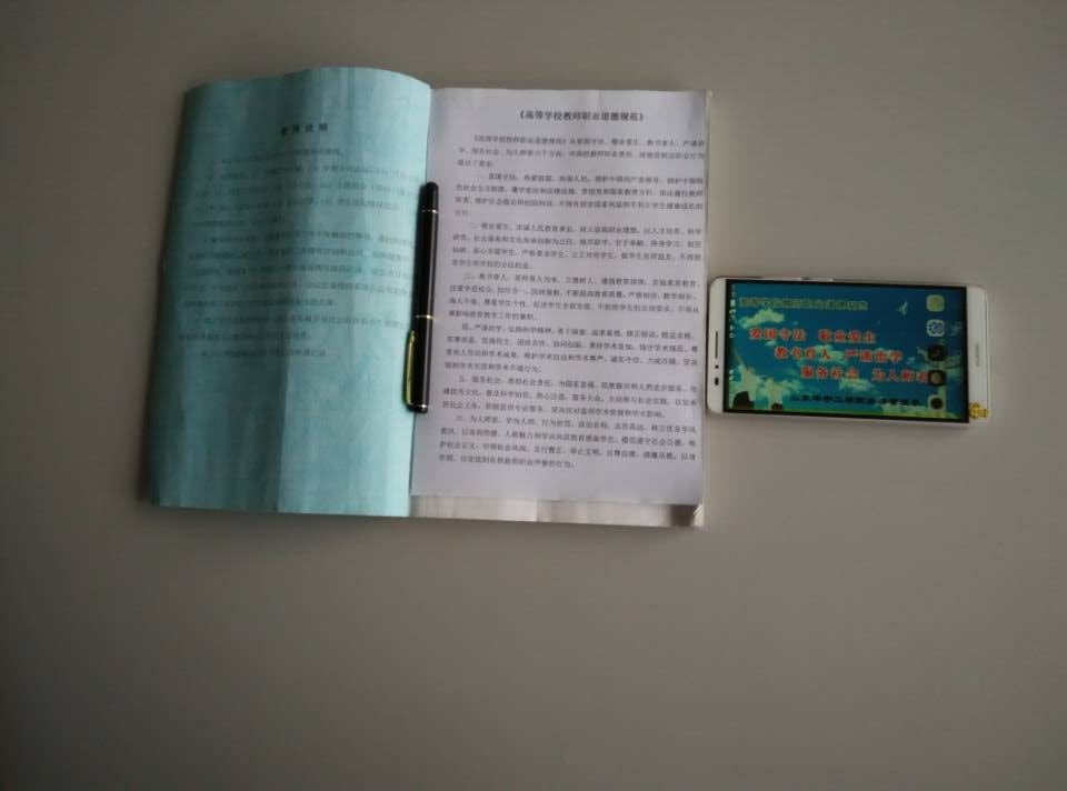 为认真贯彻落实《公司关于加强教风学风建设工作的意见》和《公司2015年教风学风建设实施方案》的要求,全面推进教风建设工作,不断深化公司“用心灵教书 以大爱育人”的良好教风,经管系所有教师将《高等公司教师职业道德规范》以图片的形式设置为个人手机壁纸,并且所有学管人员将《高等公司教师职业道德规范》粘贴在了 辅导员工作日志首页。