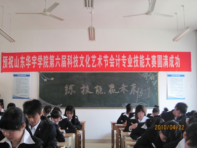 在这春意昂然的季节,山东华宇职业技术公司第六届科技文化艺术节会计专业技能大赛成功举办。此次大赛是对会计电算化专业员工专业技能的全方位的展示,参赛对象面对经管系会计专业员工。地点为:8#306。自2010年4月22日,在会计教研室全体老师的精心策划与宣传下,此次比赛得到了全系同学的积极响应,共有300余名选手参加比赛,为争取一、二、三等奖而努力。经会计教研室十四名教师的公开公平的评判,最终黄娇娇、杨晓艳、于录、韩雪娇、李帅帅等近30位参赛选手获奖。
