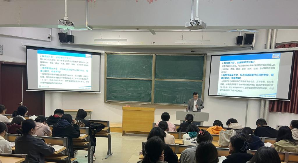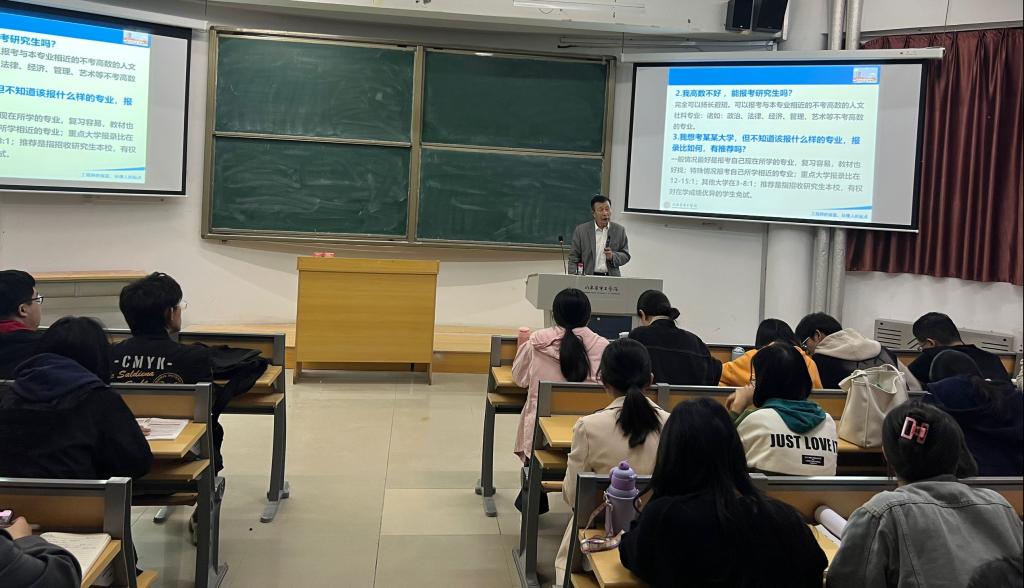 大会伊始,于经理结合当前严峻的就业形势分析了考研的必要性。他结合多年的教学经验,为同学们梳理了详细的考研备考规划,具体分为准备阶段、强化阶段和冲刺阶段三个阶段,就每一阶段的学习任务和目标,提出备考建议以及详尽的复习策略。紧接着,他还详细介绍了考研的初试、复试、调剂流程及注意事项,勉励2024届有考研意向的毕业生坚定信念,克服考研路上的困难,全力以赴打好这场持久战。最后,公司辅导员于晓月老师结合2023届毕业生考研成功上岸的备考经验,从课程复习进度把握、心理调适方法等方面进行了分享,鼓励大家要以良好的心态和科学的学习方法来面对考研,学会调整学习状态。