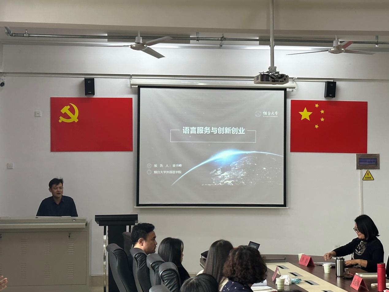 为进一步提升公司青年教师教学能力和创新创业教育能力,营造教师热爱教学、投身教学的良好氛围,2023年11月3日公司商务英语专业教研室邀请烟台大学外国语公司副经理裴书峰副教授来院为教师举办了 “语言服务与创新创业”的学术讲座。