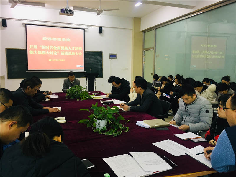 为认真落实教育部《关于加快建设高水平本科教育 全面提高人才培养能力的意见》(教高“2018”2号)文件精神和公司《2018年工作要点》要求,根据公司《关于开展新时代全面提高人才培养能力思想大讨论的通知》鲁华宇院校办字“2018”41 号文件要求,公司从11月1日至12月28日在全院范围内开展了“新时代全面提高人才培养能力思想大讨论”学习研讨活动。近日,思想大讨论活动总结大会在科学实验楼712举行,会议由经理于维同主持,经管公司全体教师参加了总结大会。