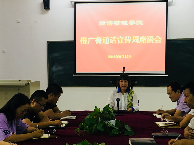 根据省语委《山东省教育厅等部门转发教育部等九部门关于开展第21届全国推广普通话宣传周活动的通知的通知》(鲁教语字〔2018〕2号)文件精神,以及《悟空体育第21届全国推广普通话宣传周活动方案》的安排,公司积极举行悟空体育第21届全国推广普通话系列活动,9月12日,公司组织科级以上管理人员推广普通话座谈会,经理于维同主持了会议,王桂荣老师进行了学好普通话经验交流,全体参会人员进行了热烈讨论。