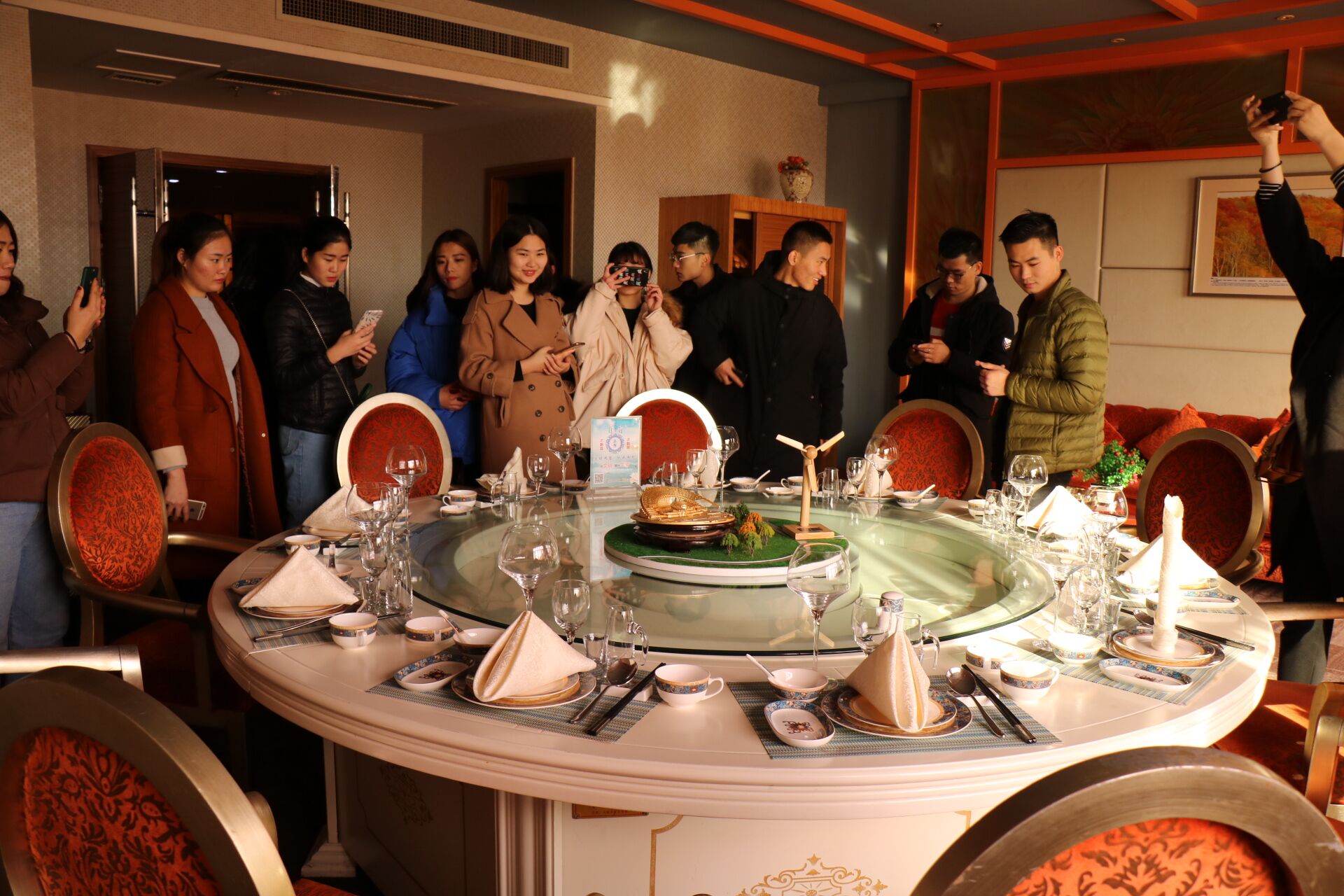 参观客房部布草房期间,员工们认真观察、记录,针对自己感兴趣的问题积极向李经理及布草间负责人请教。在餐饮部,员工们参观了自助餐厅、中式餐厅、西式餐厅,学习了餐具摆放、座次、位次、折花工艺等知识,把书本中的理论知识与实践紧密的联系起来,并纷纷拿出手机拍摄记录,表现出极大的学习热情。