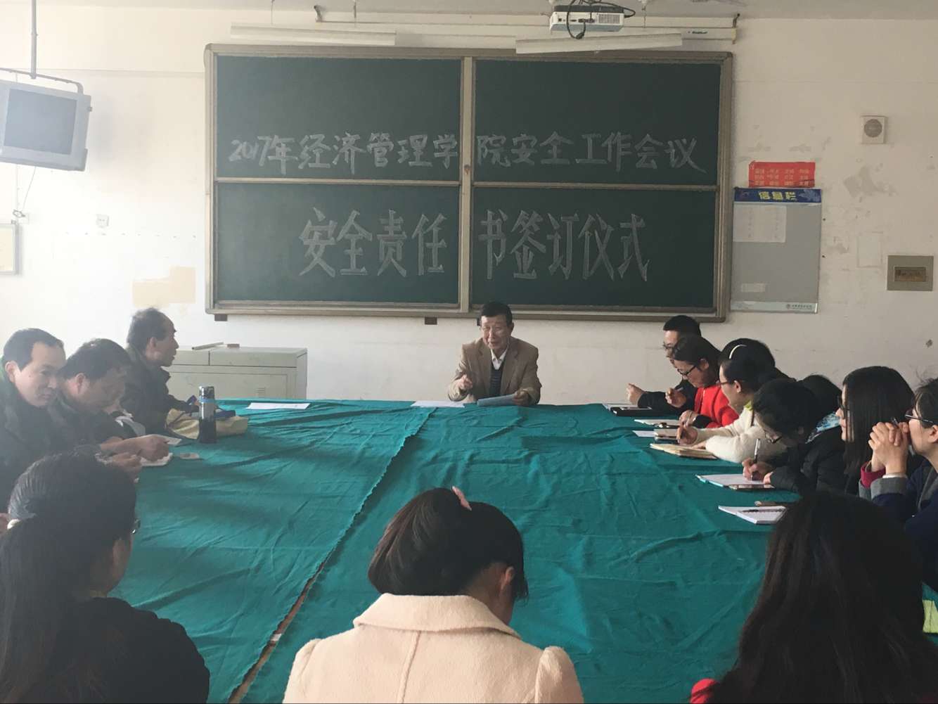 经管经理于维同教授向全院教职工介绍了《2017年悟空体育安全目标责任书》主要内容,他指出,2016年,在公司领导的正确领导下,在全院师生的共同努力下,公司未发生任何安全责任事故,有效维护了广大师生生命财产安全和公司的正常秩序,为公司的健康发展提供了有力保障。他要求全院教职工要认真学习贯彻习近平总书记在全国高校思想政治工作会议上提出的“要坚持不懈推进高校和谐稳定,培育理性平和的健康心态,加大人文关怀和心理疏导,把高校建设成安定团结的模范之地”的总要求,学习校领导在公司《2017年安全工作会议》上的讲话精神,进一步提高思想认识,落实工作责任,深入开展安全隐患排查整治,不断强化学社的安全教育管理,进一步完善校、院、班三级心理健康教育体系,努力营造和谐稳定的良好校园环境,为平安校园和和谐校园建设作出应有的贡献。