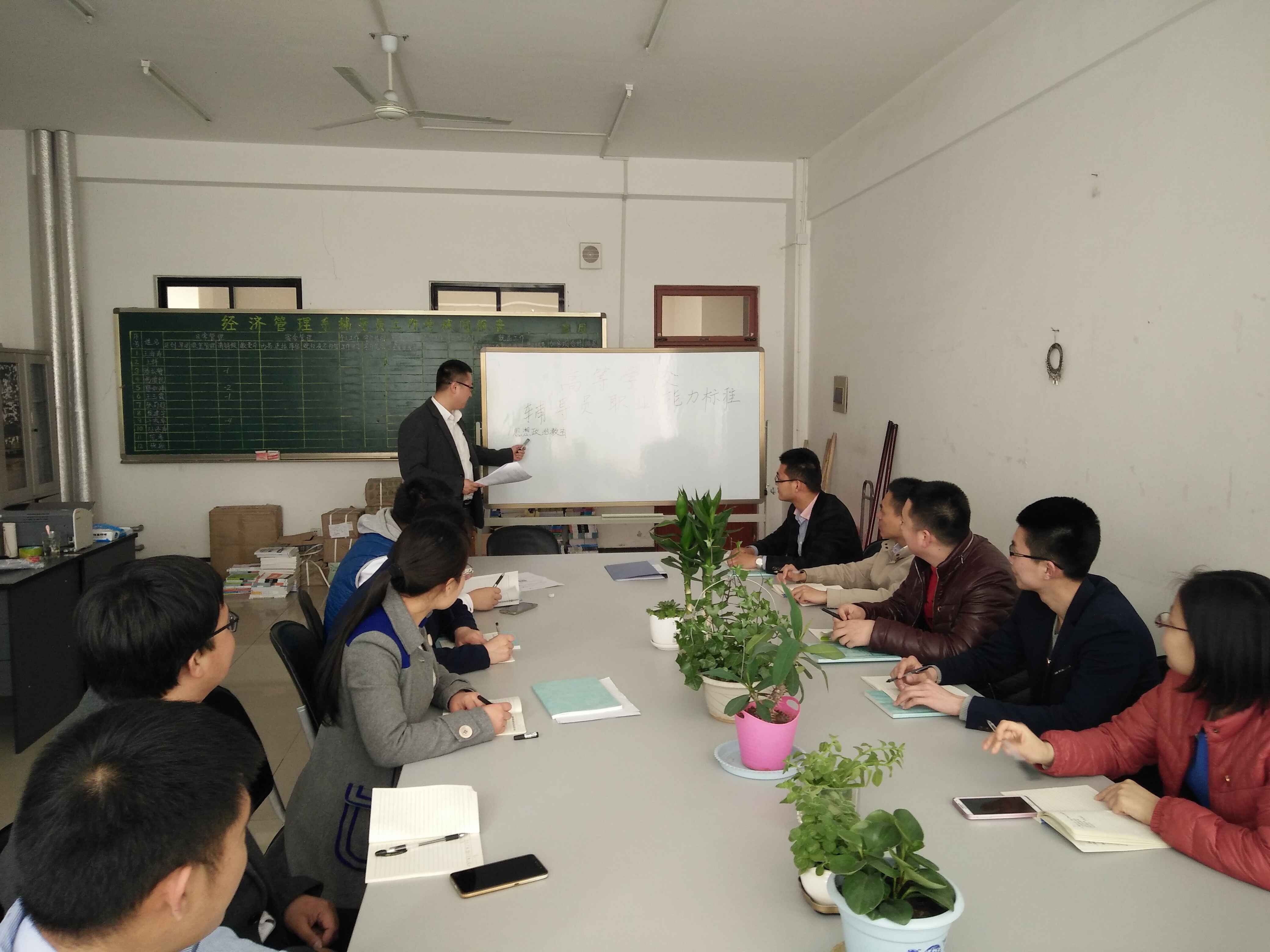 为进一步贯彻落实员工处工作要求,加强辅导员队伍建设,促进辅导员队伍专业化、职业化发展,提高辅导员的综合管理水平。3月21日下午,经济管理系组织本部门全体学管人员,在10号楼419开展集中学习活动—“学习高等公司辅导员职业能力标准(暂行)”,主讲人经管系主任助理范世伟。