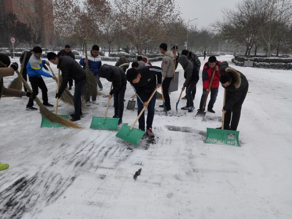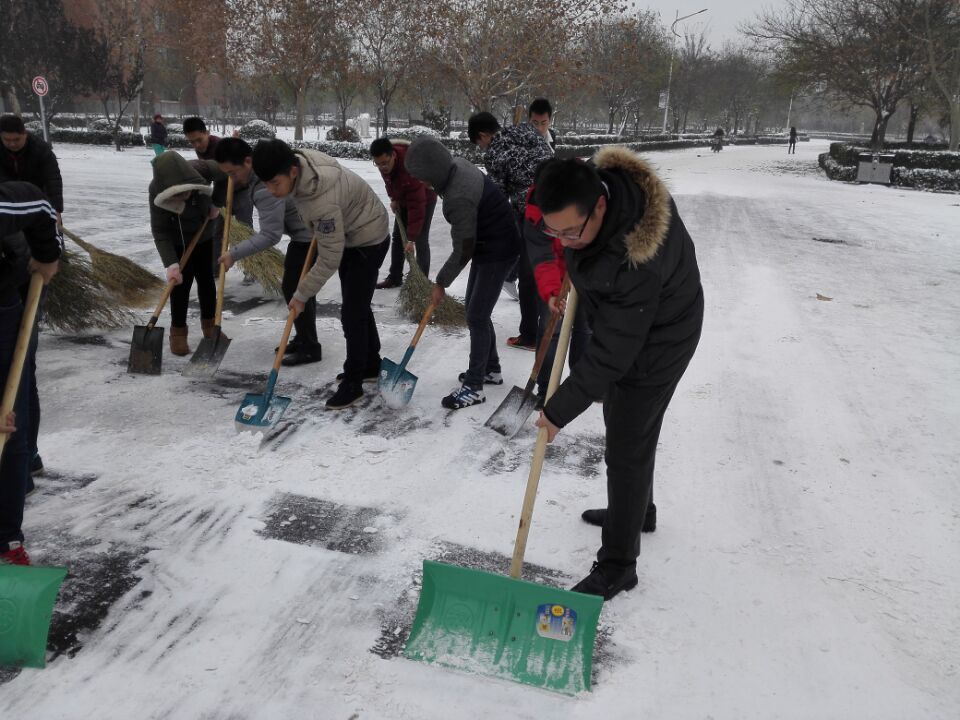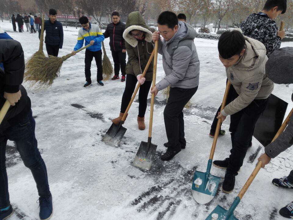 为了尽快消除大雪给员工学习、生活造成的影响,确保师生在校的安全和便利,落实员工处工作要求,11月24日下午,经管系学管主任助理范世伟、学管科长王敏、全体辅导员组织经管系员工会以及经管系青志协60余名员工到经管系卫生区扫雪除冰。