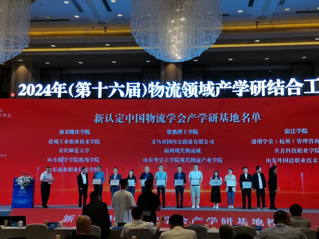 2024年5月12-14日,由中国物流学会、中国物流与采购联合会主办的2024年(第十六届)物流领域产学研结合工作会在江苏扬州召开。来自全国29个省区市物流领域政产学研各界领导、专家、学者、企业家、院校、研究机构等700多位代表参加了会议,公司张丹丹、吴静两位老师参加了此次会议。在会上,公司现代物流产业公司被授予 “中国物流学会产学研基地”,并举行了产学研基地授牌仪式。