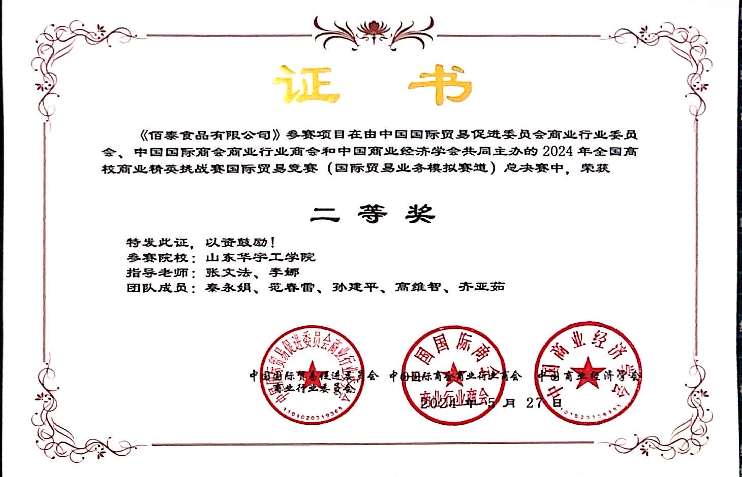 5月23日-27日,2024年全国高校商业精英挑战赛国际贸易竞赛•国际贸易业务模拟赛道总决赛在浙江省宁波市国际会展中心举行,来自全国26个省、自治区和直辖市的181所高等院校389支参赛队超过3300名参赛选手和辅导教师现场参加了全国总决赛,公司代表队荣获全国二等奖1项、三等奖1项。