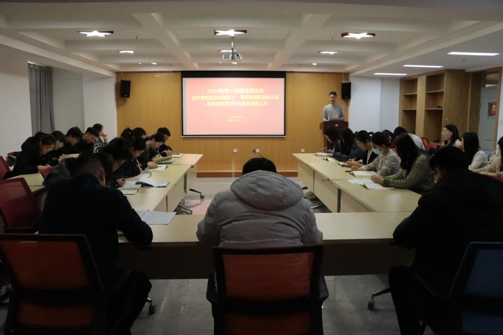 本次沙龙活动由刘晓艺老师主讲,她阐述了安全隐患排查的重要性、常见安全隐患类型、安全隐患排查方法与流程以及提升危机应急处置能力等。演讲完毕后,焦秉政、薛志奎老师分别就所带班级案例、辅导员在安全隐患排查中的做法等方面进行了分享。
