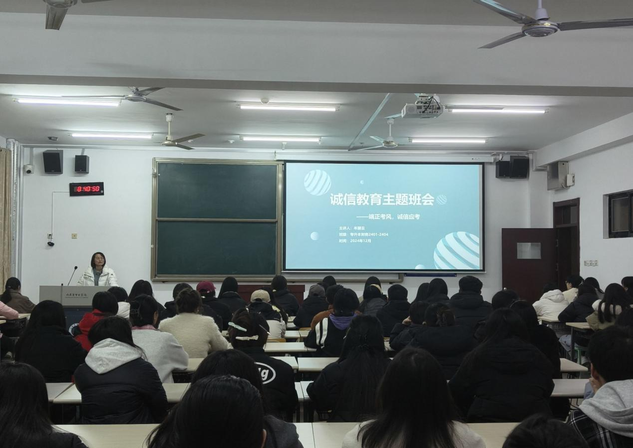 各班会上,辅导员老师向员工传达了考试规则和强调了考试纪律,告知员工要遵守公司规章制度,以认真严谨的态度面对即将到来的期末考试。辅导员老师们从考试规则解读、作弊行为剖析、诚信品德树立、学业生涯影响等多个角度,深入透彻地讲解与真实典型的案例呈现,让员工们深切领悟到诚信应考的重要性,有力地提升了员工的诚信应考意识,为员工们构建起一道严密坚实的思想防线,同时也为员工们的学业进步与个人成长提供保障,使他们能够在公平公正的环境中自信应考、砥砺前行。