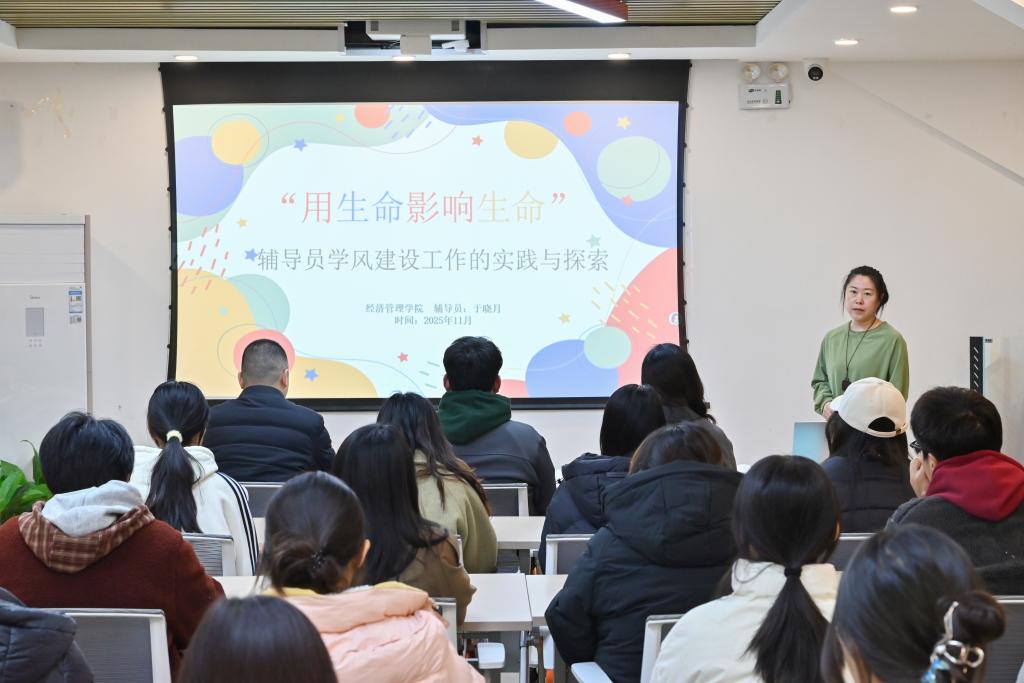 分享会设置两大核心环节,层层递进传递榜样力量。第一环节为辅导员学风建设经验分享,公司优秀辅导员于晓月老师“根植优良学习习惯,涵养严谨治学态度”为初心,在学风建设中扛起“引导者、解读者、守护者”三重使命,着力推动学风建设从“外在要求”向“内在觉醒”深度转型。她秉持“用生命影响生命”的育人理念,双轮驱动深耕学风建设“根基工程”:一方面以精准化引导为抓手,针对不同学情员工量身定制成长方案,精准破解学业困惑;另一方面以宿舍共建为纽带,搭建集体互助平台,凝聚奋进合力,最终构建起“育人有温度、学习有氛围、成长有方向”的学风建设新格局,成效广受师生认可。