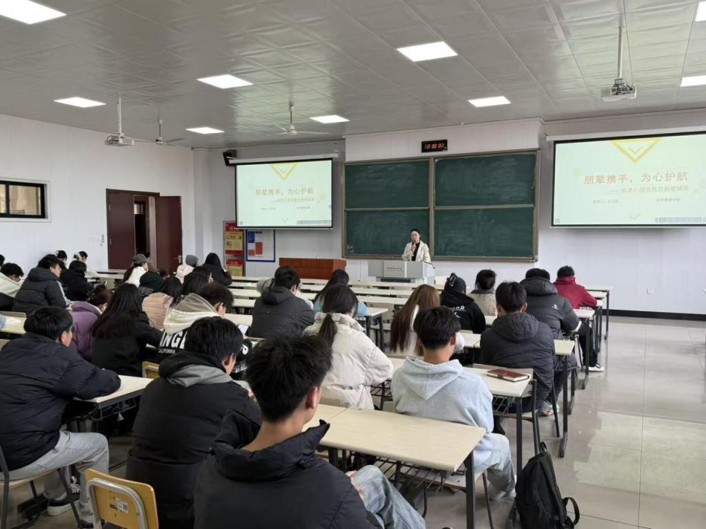 王老师以“朋辈携手,为心护航”为主题,从角色定位、核心能力培养、常见问题应对展开讲解。她明确朋辈辅导员“观察员、疏导员、宣传员”的三重角色,强调需兼顾信任建立与专业边界,通过案例解析帮助学员明晰职责。核心能力培训中,王老师聚焦倾听共情、沟通技巧、危机识别三大要点,通过角色扮演实操指导沟通技巧,并结合手册讲解焦虑、抑郁等问题的早期表现及筛查方法。针对6类典型心理问题场景,王老师拆解应对流程,着重强调危机处理“先安抚、再报告、后陪伴”的原则,明确禁止超出能力范围的干预行为,现场解答学员困惑,学习氛围浓厚。