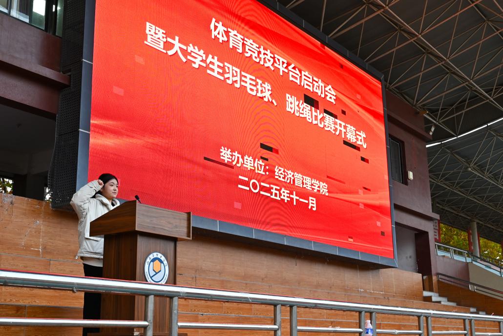本次开幕式旨在落实立德树人根本任务,发挥第二课堂育人实效,培育员工奋勇拼搏、追求卓越的体育精神,仪式上,赛事负责人王萌萌老师和杨泽老师郑重宣读了比赛方案和规则;随后,王萌萌老师作为裁判员代表宣誓,承诺在比赛过程中做到公正评判;运动员代表杜鹃同学代表全体参赛选手庄严宣誓,彰显了经管学子团结协作、勇于拼搏体育精神。
